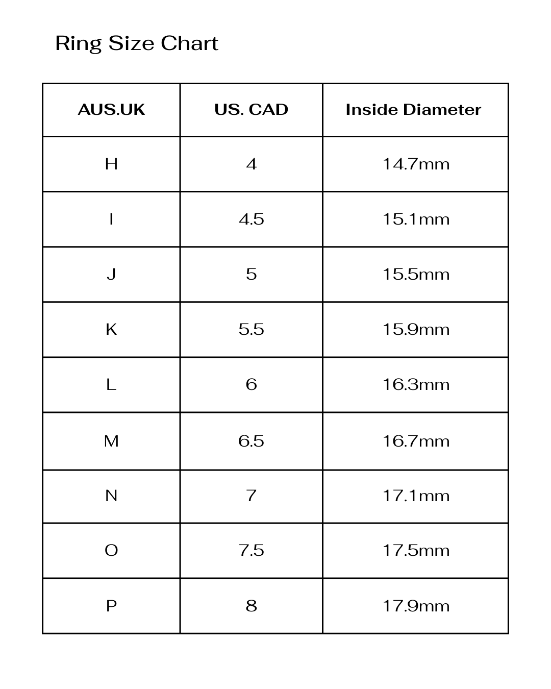 To find your best size, we recommend measuring the inside diameter of a ring you already have. Read More
